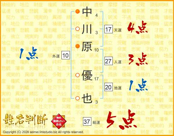 中川原優也さんの総運は37画の5点!