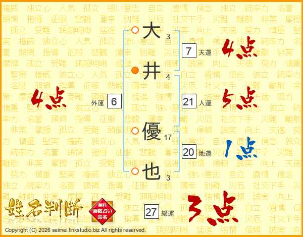 大(3画)井(4画) 優(17画)也(3画)