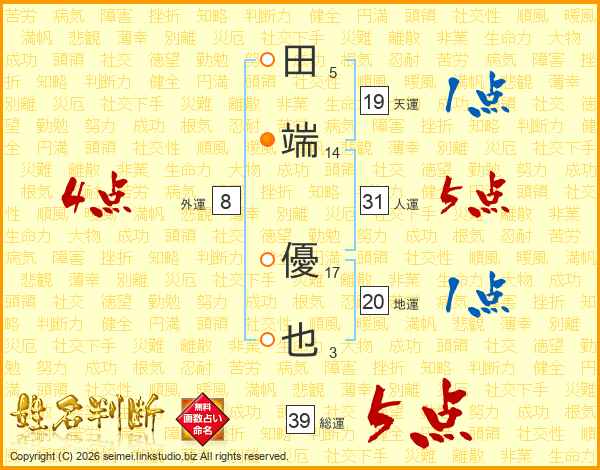 田端優也さんの総運は39画の5点!