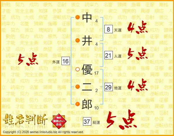 中井優二郎さんの総運は37画の5点!