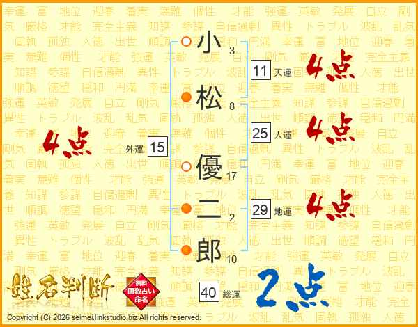 小松優二郎さんの人運は25画の4点!