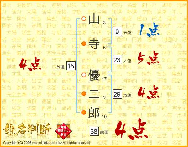 山寺優二郎さんの総運は38画の4点!