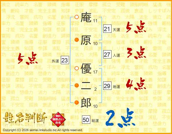 庵原優二郎さんの外運は23画の5点!