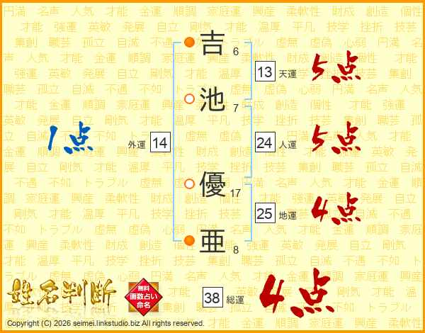 吉池優亜さんの総運は38画の4点!