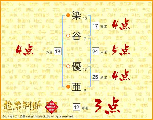 染谷優亜さんの総運は42画の3点!