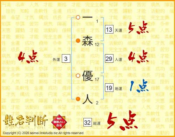 一森優人さんの天運は13画の5点!