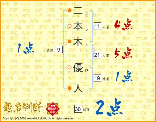 二本木優人さんの天運は11画の4点!