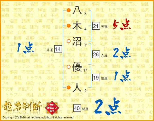 八木沼優人さんの天運は21画の5点!
