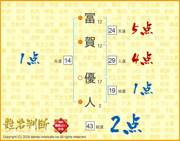 冨賀優人さんの人運は29画の4点!