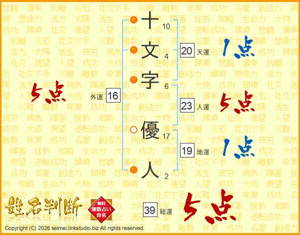 十(10画)文(4画)字(6画) 優(17画)人(2画)