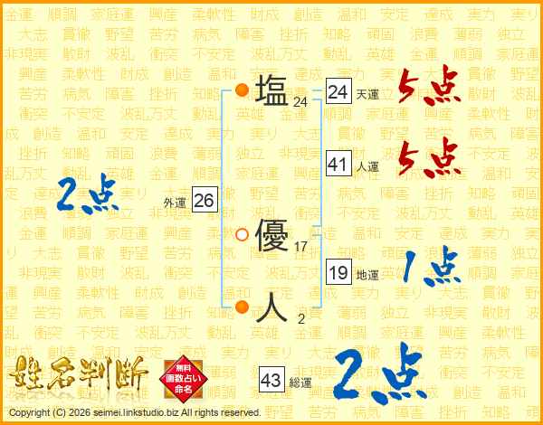 塩(24画) 優(17画)人(2画)