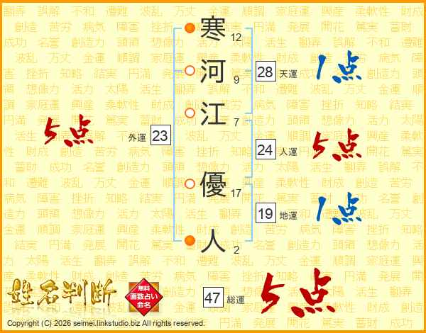 寒(12画)河(9画)江(7画) 優(17画)人(2画)