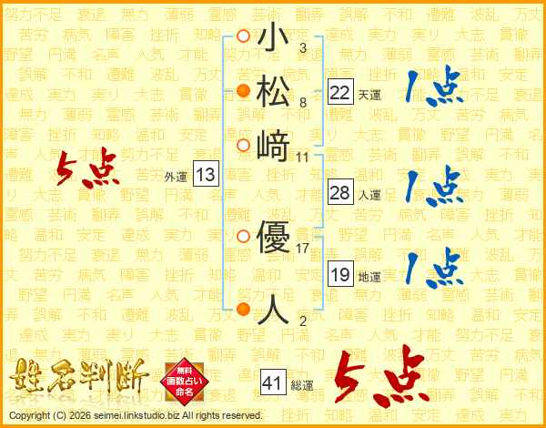 小松﨑優人さんの外運は13画の5点!
