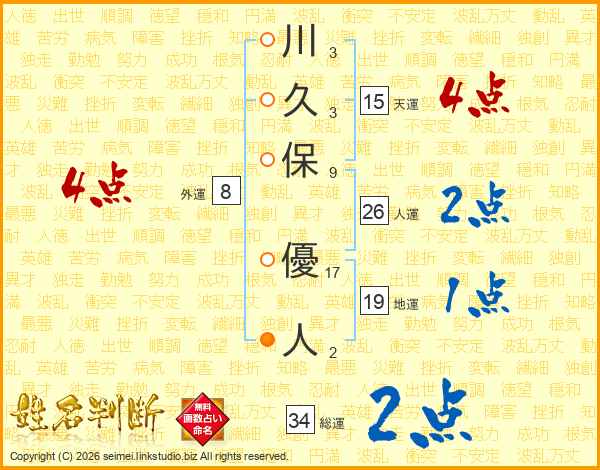川久保優人さんの天運は15画の4点!
