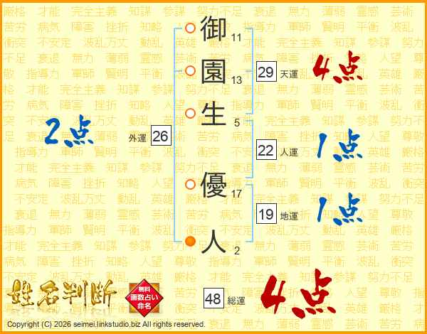 御園生優人さんの総運は48画の4点!