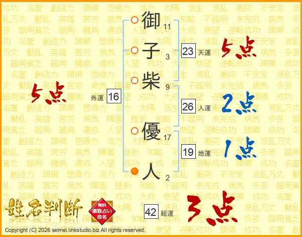 御子柴優人さんの総運は42画の3点!