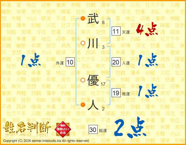 武川優人さんの天運は11画の4点!