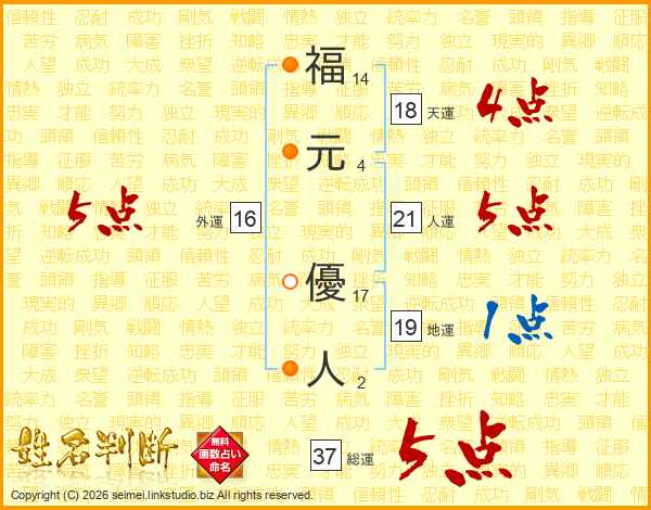 福元優人さんの総運は37画の5点!