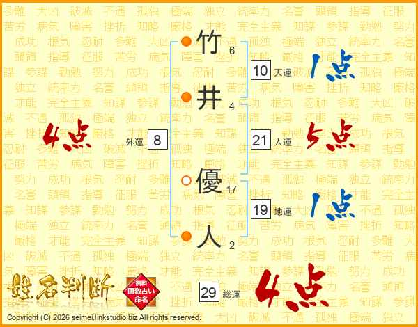 竹(6画)井(4画) 優(17画)人(2画)