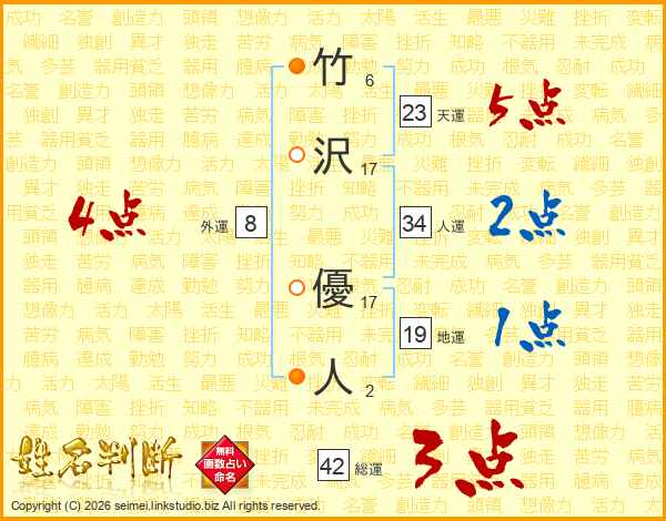 竹沢優人さんの天運は23画の5点!