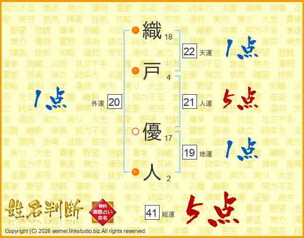 織戸優人さんの総運は41画の5点!