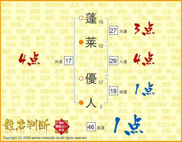 蓬莱優人さんの総運は46画の1点!