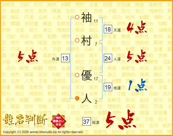 袖村優人さんの総運は37画の5点!