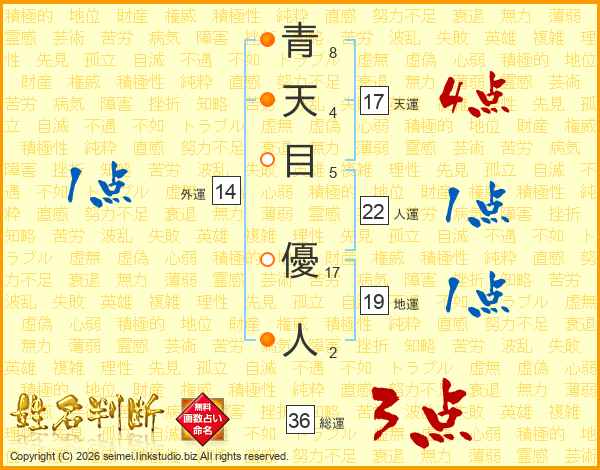 青天目優人さんの天運は17画の4点!