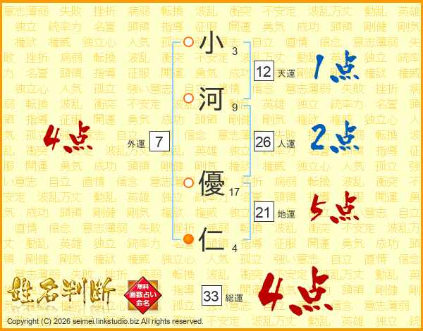 小河優仁さんの総運は33画の4点!