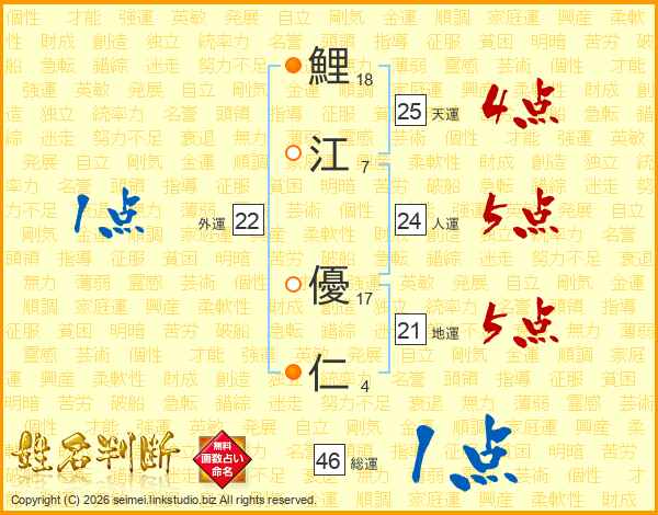 鯉江優仁さんの総運は46画の1点!