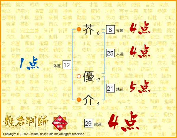 芥優介さんの人運は25画の4点!