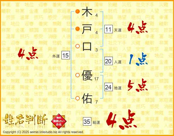 木戸口優佑さんの総運は35画の4点!
