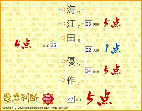 海江田優作さんの総運は47画の5点!