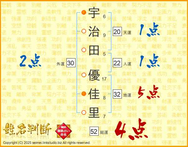宇治田優佳里さんの総運は52画の4点!