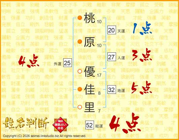 桃原優佳里さんの総運は52画の4点!
