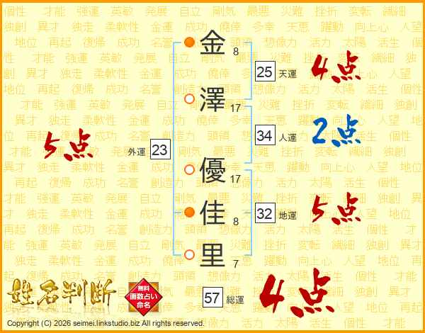 金澤優佳里さんの総運は57画の4点!