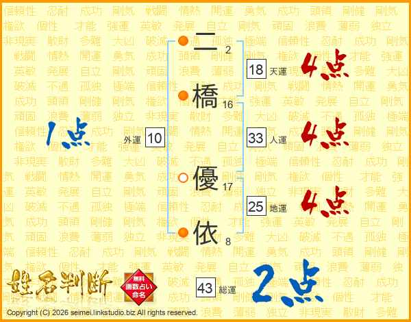 二橋優依さんの地運は25画の4点!