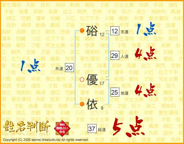 硲優依さんの地運は25画の4点!