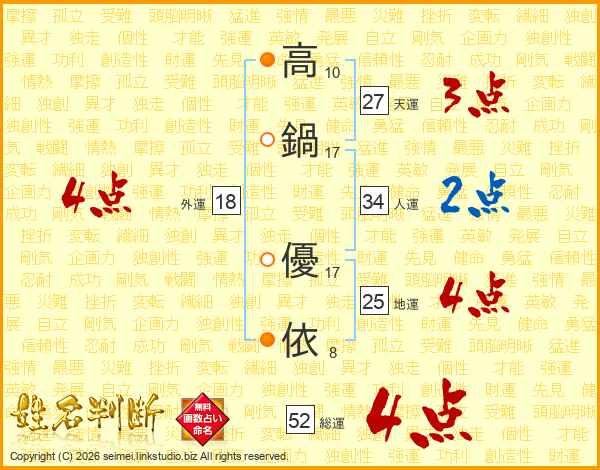 企画力 独創性 強運 功利 創造性 財運 先見 健命 勇猛