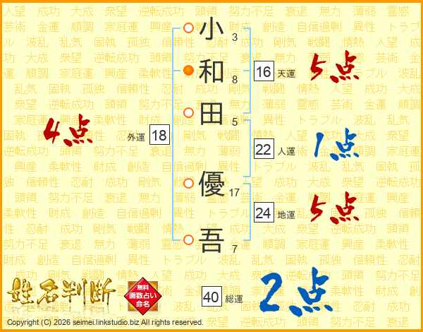 小和田優吾さんの総運は40画の2点!
