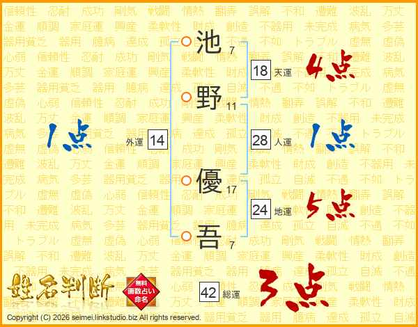 池野優吾さんの人運は28画の1点!