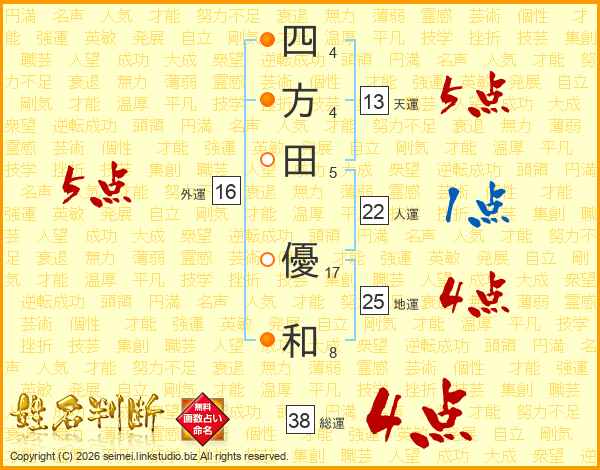 四方田優和さんの総運は38画の4点!