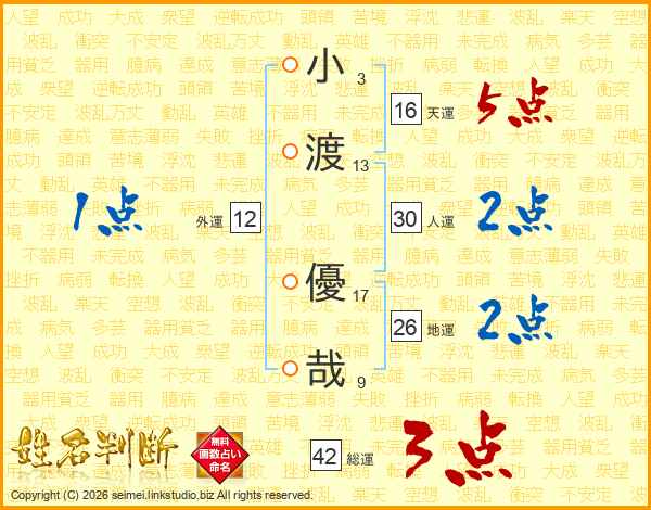 小渡優哉さんの総運は42画の3点!