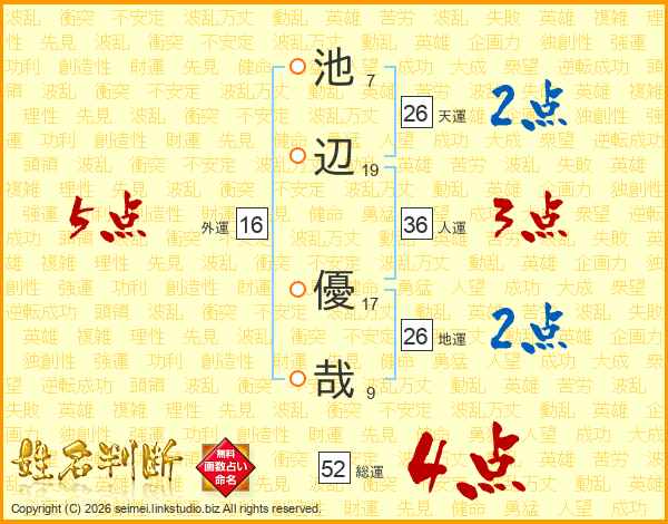 池辺優哉さんの総運は52画の4点!