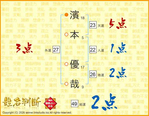 濱本優哉さんの天運は23画の5点!