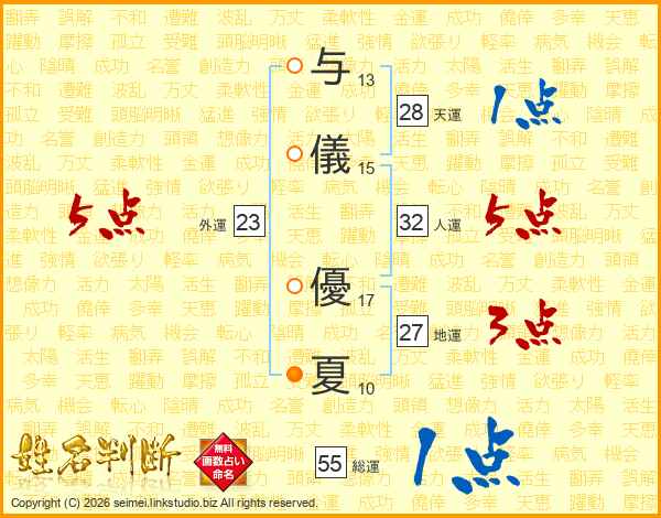 与儀優夏さんの総運は55画の1点!