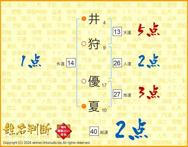 井狩優夏さんの外運は14画の1点!