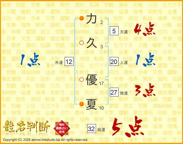 力久優夏さんの総運は32画の5点!