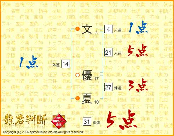 文(4画) 優(17画)夏(10画)