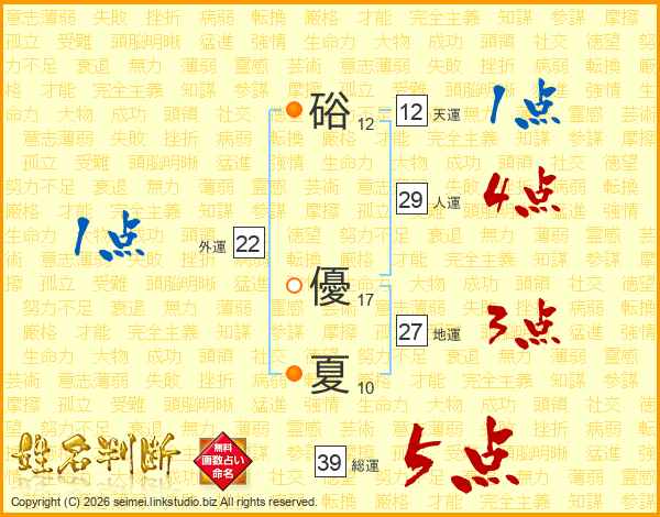 硲優夏さんの総運は39画の5点!